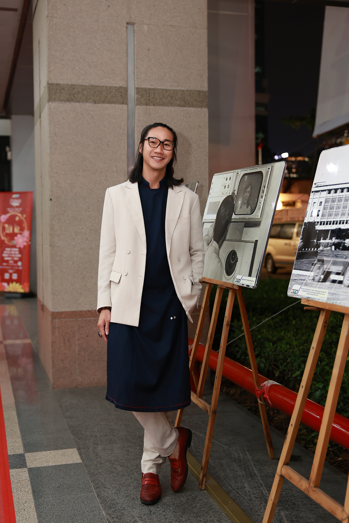 Bên ngoài, chiếc blazer cổ điển giúp định hình khung vai, mang đến vẻ ngoài lịch lãm. Theo nhiều chuyên gia, việc kết hợp vest với áo dài không chỉ tạo hiệu ứng thị giác mà còn góp phần nâng cao tính trang trọng của trang phục.