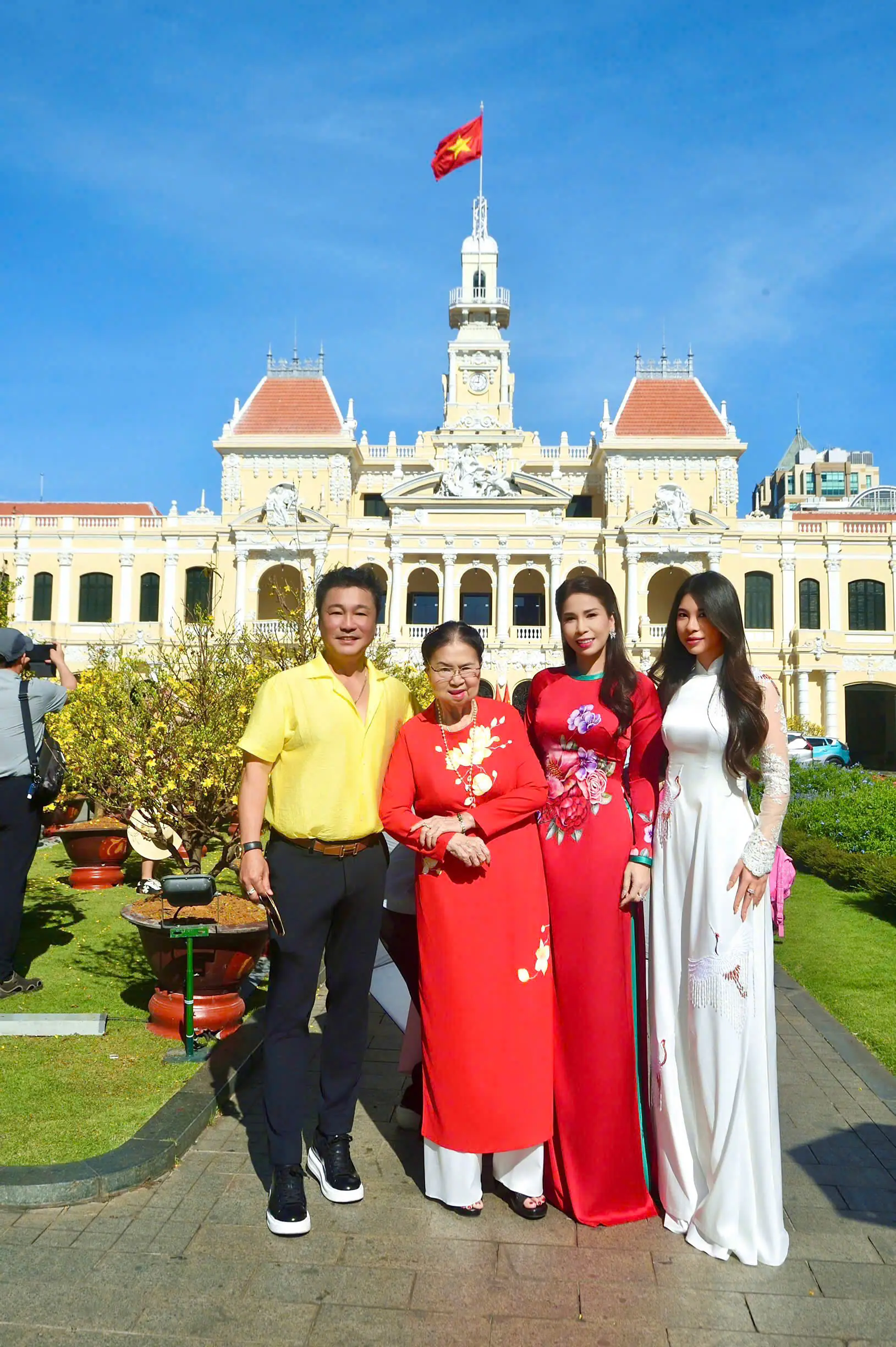 Trong sắc nắng nhẹ đầu năm, Má Lan – thân mẫu của Lý Hùng rạng rỡ trong tà áo dài truyền thống, sánh bước bên các con, các cháu. Bên cạnh Lý Hùng và Lý Hương còn có con gái Jessica, các chị gái của Lý Hương, em gái của Lý Hùng cùng các cháu từ Đức trở về. Sự hiện diện đông đủ tạo nên một khung cảnh gia đình ấm áp giữa không gian rực rỡ hoa xuân.