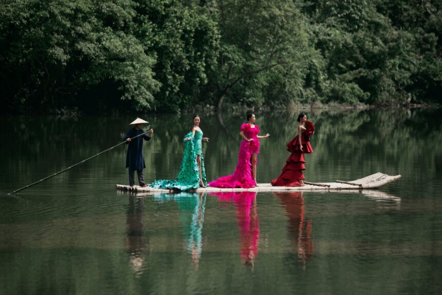 Giữa khung cảnh Đảo Khê Cốc – một địa danh thuộc danh thắng Tràng An, Ninh Bình – Bộ 3 Hoa hậu Hoàn vũ Việt Nam gồm H’Hen Niê, Ngọc Châu, Xuân Hạnh và 59 thí sinh Miss Cosmo 2024 đã trình diễn BST FALL WINTER 2024 của NTK Lê Thanh Hòa khiến người xem mãn nhãn vì ấn tượng.