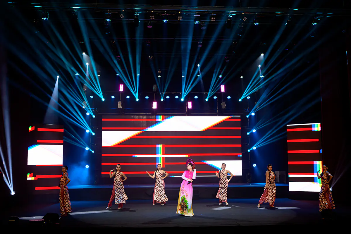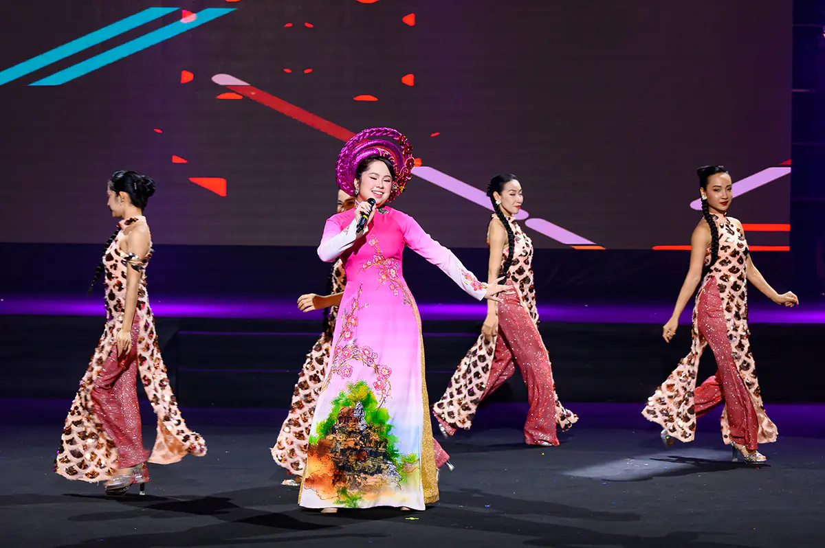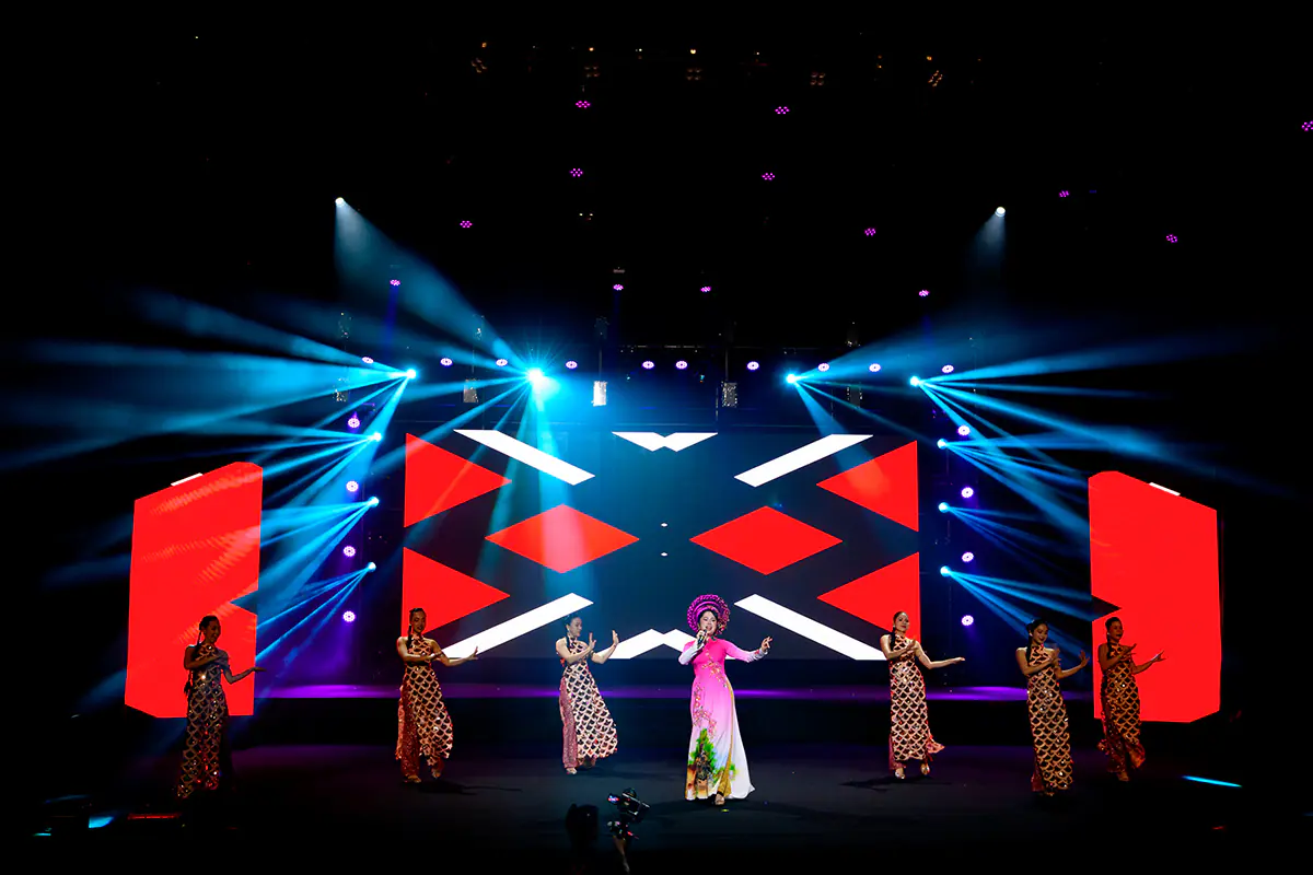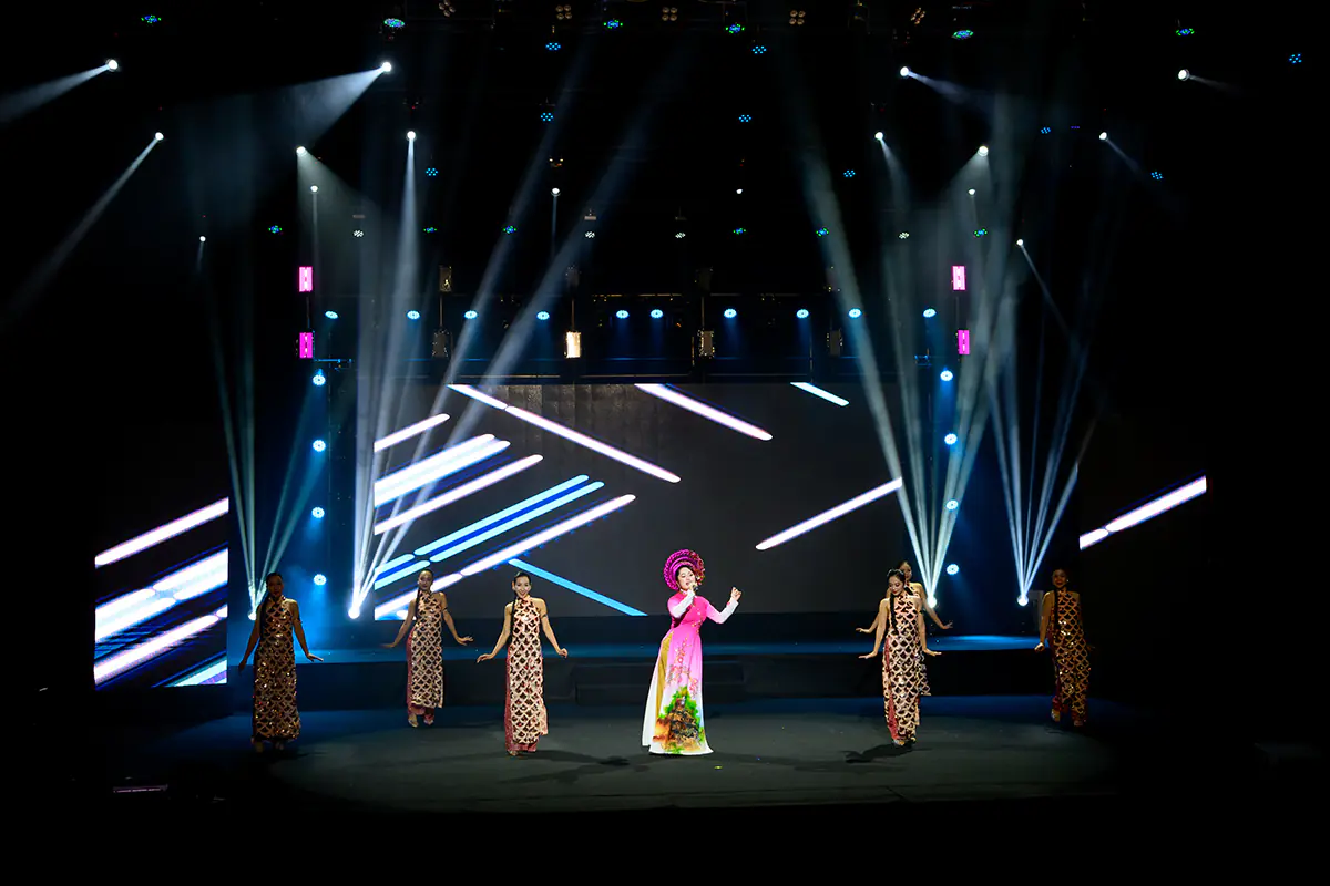 Giữa những hiệu ứng ánh sáng dày đặc và nhịp điệu sôi động của một sân khấu giải trí quy mô lớn, Victoria Nguyễn xuất hiện, mang đến một tiết mục âm nhạc đặc biệt. Cô chọn cách tiếp cận tinh tế, đặt cảm xúc và hình ảnh văn hóa làm trung tâm, ghi điểm trong mắt khán giả.
