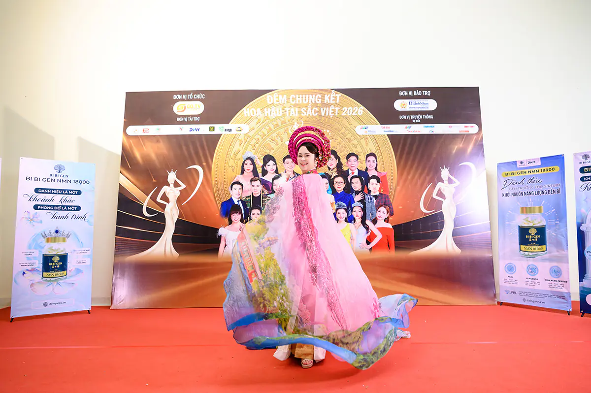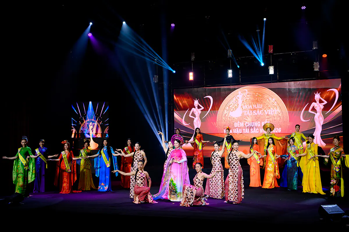 Trong không gian sân khấu rực rỡ của đêm chung kết Hoa hậu Tài Sắc Việt 2026, ca sĩ Victoria Nguyễn ghi dấu ấn bằng phần trình diễn giàu cảm xúc, kết hợp hài hòa giữa âm nhạc hiện đại và vẻ đẹp truyền thống của áo dài.