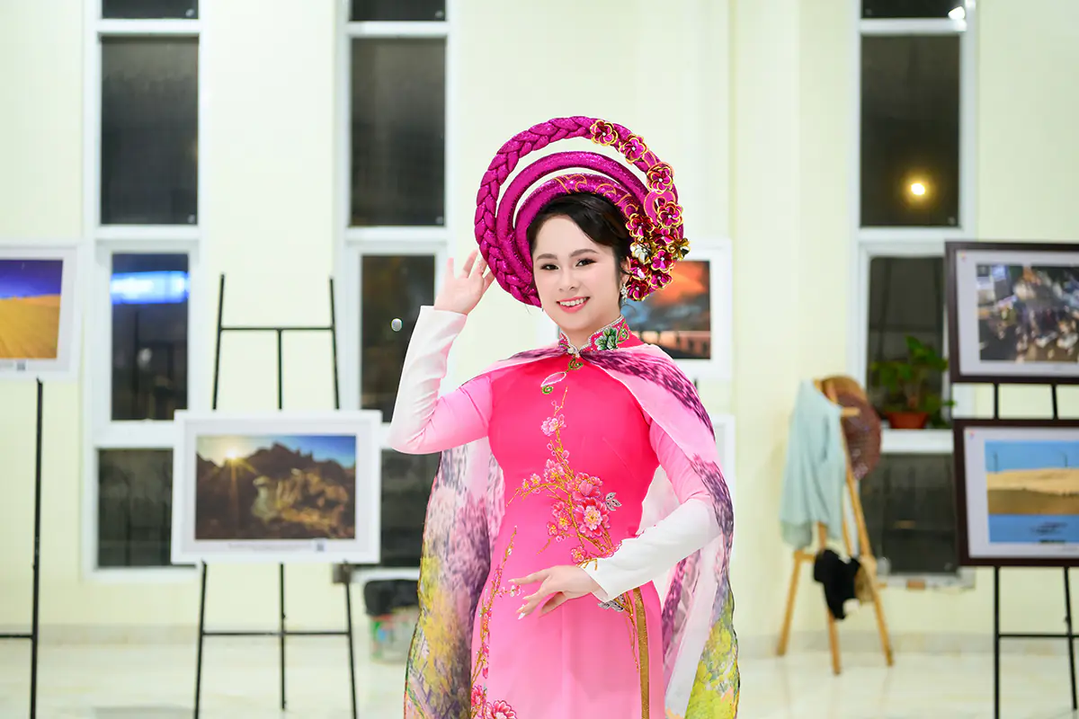 Trong phần trình diễn của mình, Victoria Nguyễn diện thiết kế áo dài của nhà thiết kế Tuấn Hải. Bộ trang phục gây ấn tượng với gam hồng nổi bật, kết hợp họa tiết vẽ tay mang hơi thở hội họa truyền thống. Phần tà áo dài được xử lý mềm mại, tạo hiệu ứng bay nhẹ theo từng bước di chuyển, góp phần làm nổi bật sự uyển chuyển của nữ ca sĩ trên sân khấu.